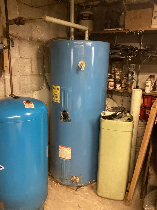Responded to service call for kitchen faucet leak occurring at base plate. Completed diagnostic assessment and identified water heater as outdated 100-gallon electric unit approximately 40+ years old. Provided customer with estimate for replacement with new 50-gallon electric water heater.