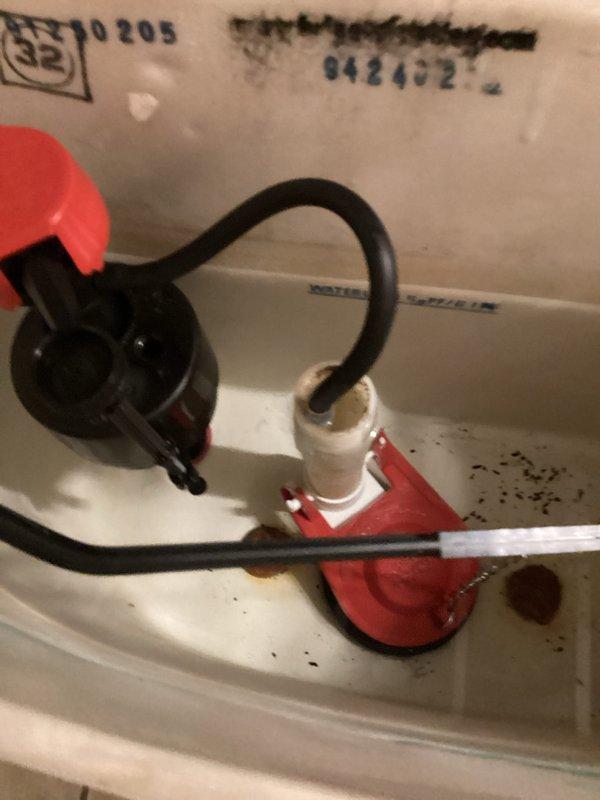 Responded to service call for toilet with homeowner-damaged valve. Diagnosed faulty fill valve during inspection. Completed tank rebuild by installing new components including fill valve assembly and connected supply line to restore proper toilet function.