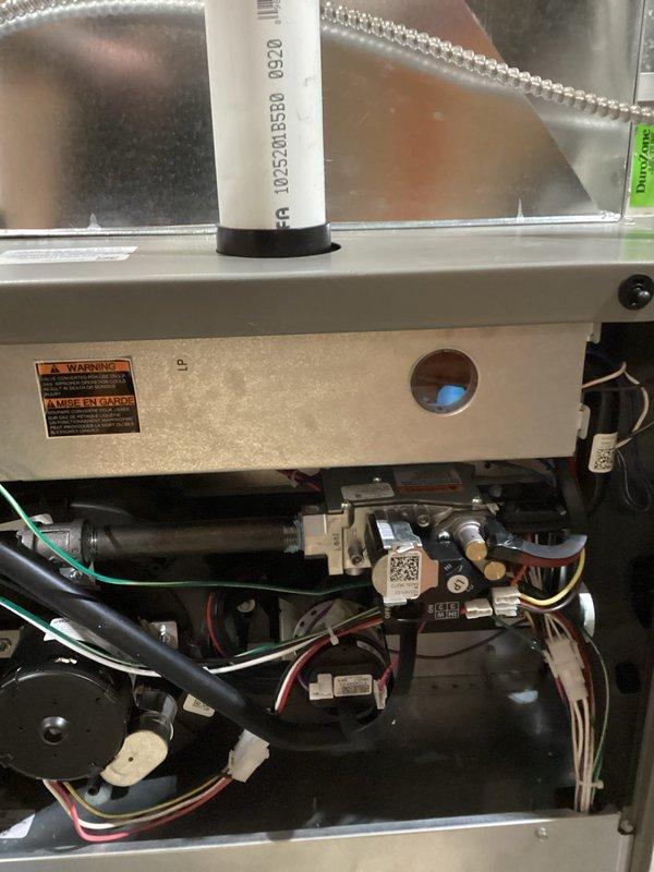 Performed scheduled one-time furnace tune-up service. Inspected PVC ventilation and drainage components, examined condensate drain system, and verified proper connections of flexible tubing. All systems were found in normal operating condition with no issues requiring repair.