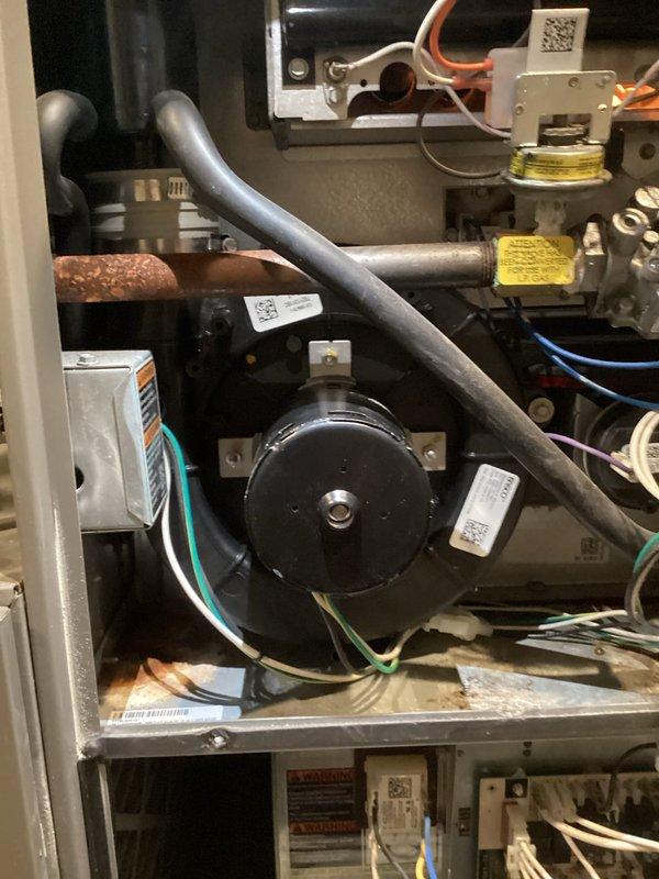 Diagnosed and replaced failing inducer motor that was producing excessive noise during furnace operation. Customer had not performed maintenance in 10 years, and system inspection revealed the inducer motor as the source of the loud operational sound. Replacement successfully resolved the noise issue.