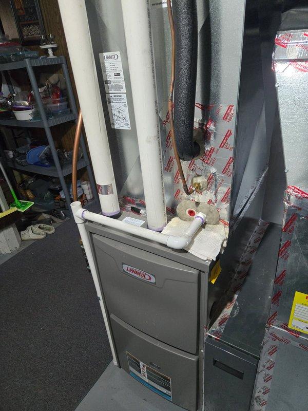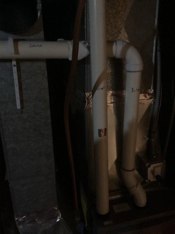 Responded to customer callback regarding improper furnace venting discovered after initial service. Inspection confirmed that exhaust was discharging into basement instead of exterior. Corrected installation by properly routing and connecting PVC vent piping to outside, ensuring safe operation per code requirements.