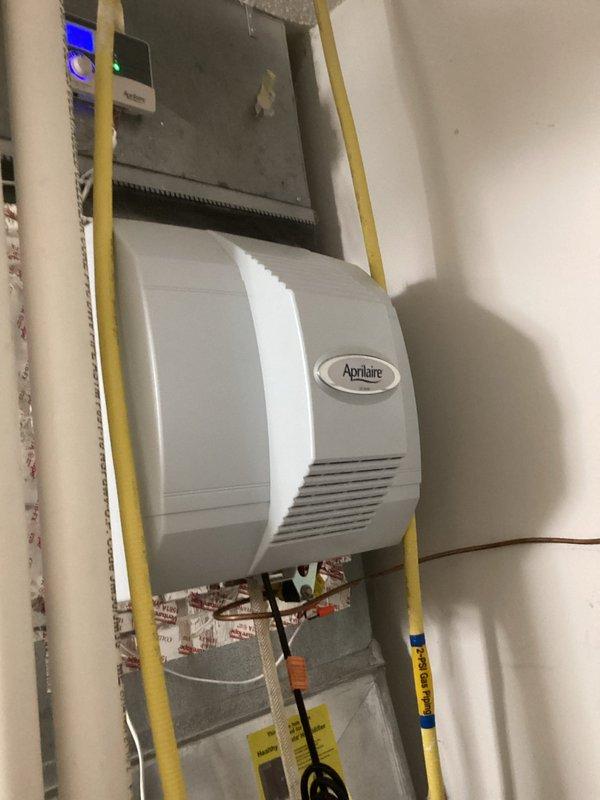 Responded to humidity control issue with Aprilaire system. Diagnostic testing revealed a severed outdoor temperature sensor wire. Successfully repaired wire connection, restoring proper system functionality and humidity control.