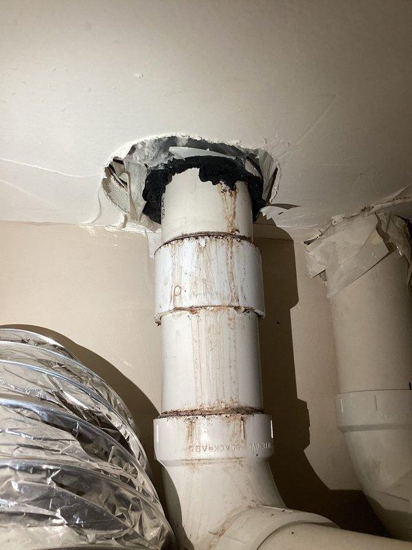 Responded to service call for leak from upstairs bathroom caused by clogged, overflowing toilet. Successfully cleared the blockage by snaking the toilet, resolving the overflow issue and stopping the leak.