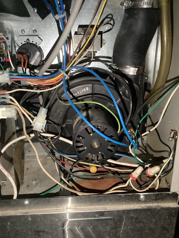 Upon arrival at 12:4, diagnosed furnace with no heat issue. Inspection revealed complete blower motor failure preventing warm air distribution throughout the home. After thorough evaluation of the aged system (10+ years), recommended either complete system replacement or blower motor replacement as repair options for customer consideration.