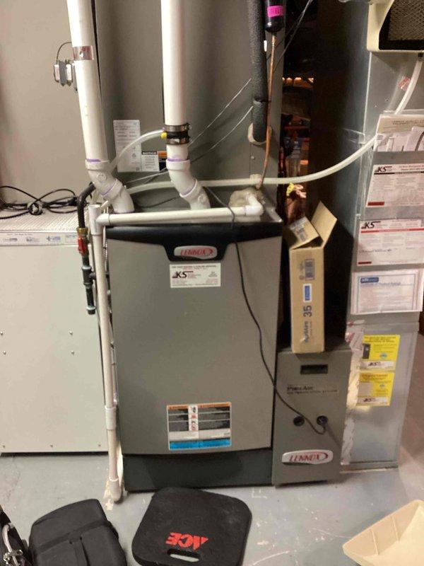 Performed routine maintenance on residential furnace system. Completed comprehensive tune-up of the furnace unit with PVC intake/exhaust venting and inspected drainage assembly. All systems functioning properly with no issues identified.