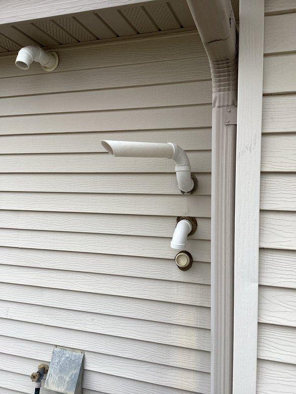Responded to service call for a disconnected furnace exhaust pipe. Upon arrival, found PVC exhaust vent that was previously installed in 2022 had detached from exterior wall. Successfully reattached and secured the exhaust pipe, restoring proper venting function to the heating system.