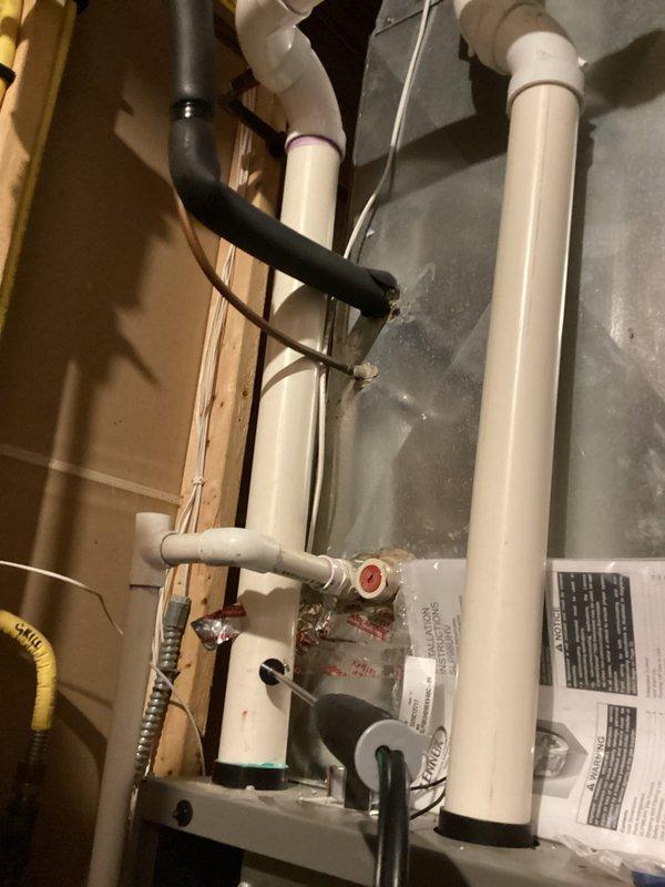 Conducted scheduled preventative maintenance tune-up on air handler system. Inspected all plumbing connections, PVC drainage pipes, and insulated refrigerant lines in utility area. System operating within normal parameters; no issues requiring repair were identified.