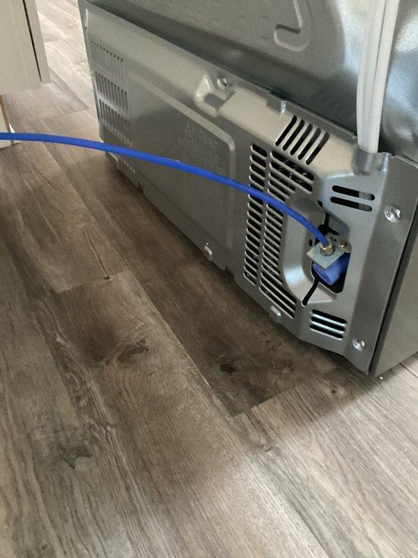 Responded to service call for broken water supply connection to refrigerator. Diagnosed issue with icemaker line and successfully installed new supply line to restore water functionality to customer's new refrigerator.