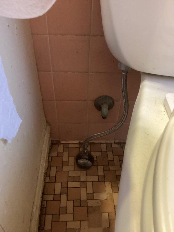 Responded to a bathroom water leak service call. Diagnosed and repaired a leaking toilet supply line by replacing the supply line and handle. Visual inspection confirmed successful repair with no further leakage observed.