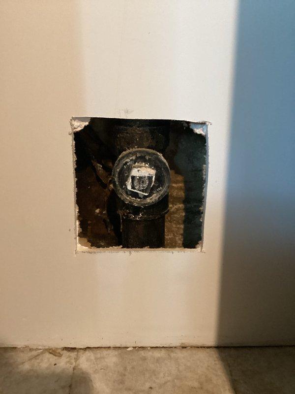 Responded to leak in basement and discovered pin hole leak on 1" copper mainline. Removed damaged section of copper pipe, replaced with new copper section, and installed a new 1" ball valve on the mainline to provide proper shut-off capability after the water meter.
