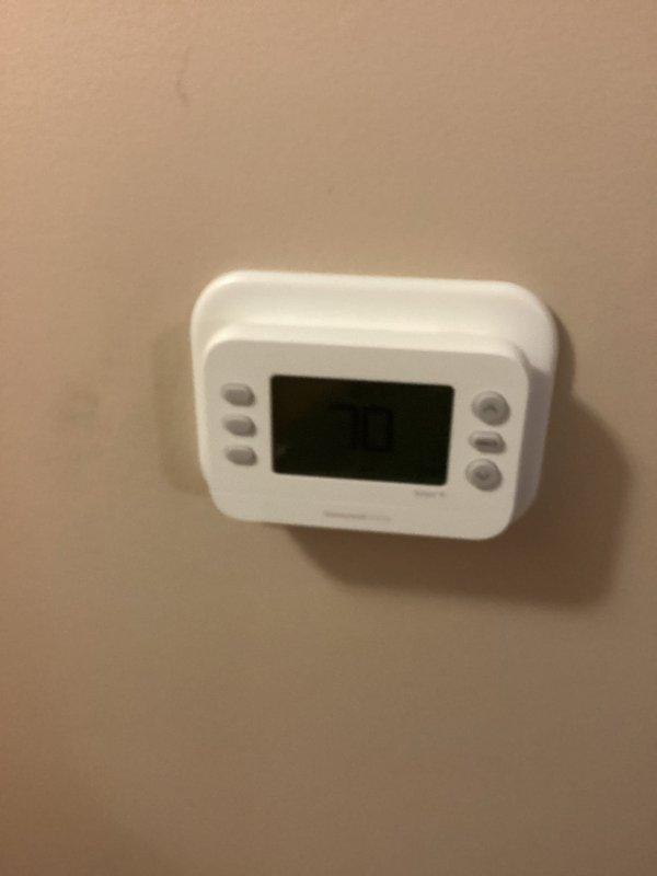 Responded to service callback to replace failed thermostat. Successfully installed and programmed new digital thermostat with multiple control functions. System now operating normally with proper temperature regulation.