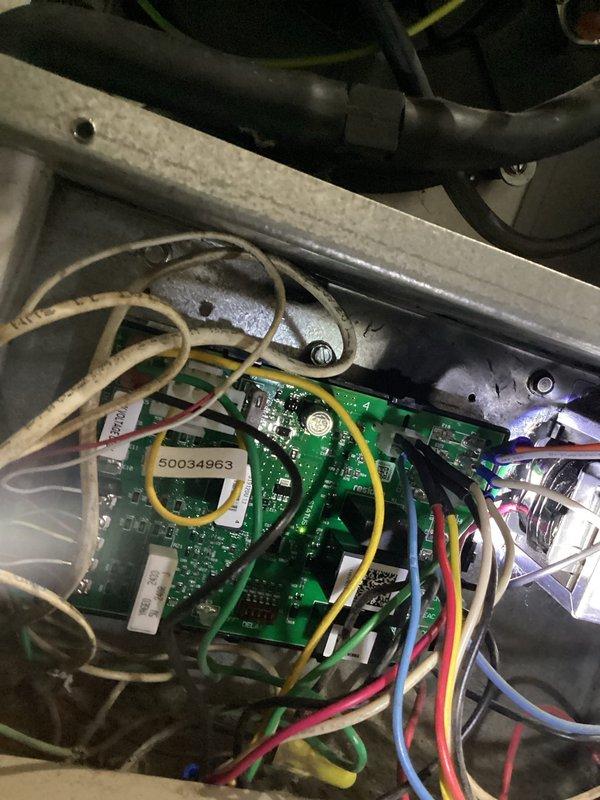 Responded to no heat call on residential furnace system that had been inoperative for several days. Upon arrival, performed diagnostic evaluation of the aging beige-cased furnace unit located in basement mechanical room. Opened access panel and inspected internal components including blower motor, fan assembly, and electrical system. Testing confirmed failed control board as root cause of system failure. Documented equipment condition through photography showing open furnace compartment with visible wiring and mechanical components, as well as adjacent Lennox unit in same utility space. Provided detailed repair estimate to address control board replacement and coordinated with project manager for scheduling of necessary repairs to restore heating functionality to the residence.