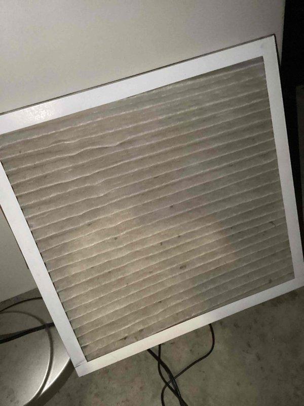 Responded to callback for furnace blowing cold air and not shutting off. Found heavily soiled air filter restricting airflow and causing system malfunction. Replaced dirty filter with new unit, restored proper airflow, and tested system to verify normal heating operation and proper cycling.