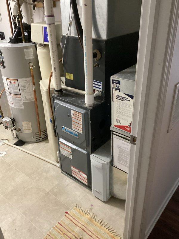 Performed scheduled furnace tune-up service. Conducted comprehensive inspection of the heating system including water heater connections and associated PVC ventilation. All components functioning properly; no issues identified. System now operating at optimal efficiency.