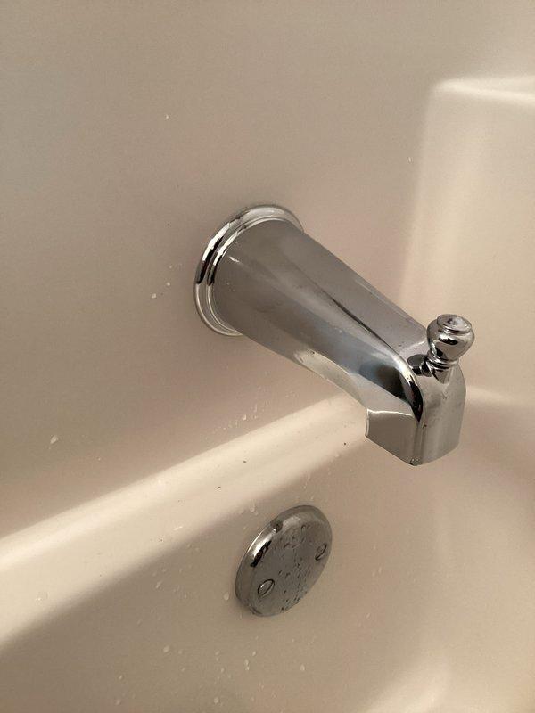 Arrived within scheduled window for water treatment estimate. Inspected bathroom fixtures and identified defective tub spout requiring replacement. Successfully installed new chrome diverter tub spout, restoring proper functionality to the bathtub/shower system.