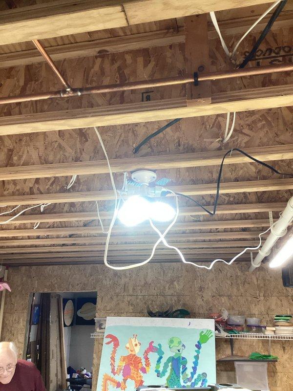 Replaced defective keyless light fixture in basement workshop area. Diagnosed non-functioning light, identified faulty socket as the source of the problem, and installed new keyless fixture. Verified proper operation after installation.
