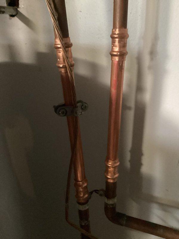 Repaired pinhole leak on 3/4" copper water line leading to water softener in basement. Located and isolated the leak, then installed appropriate copper fittings to restore system integrity. Verified repair with pressure test; water service now functioning properly with no leakage observed.