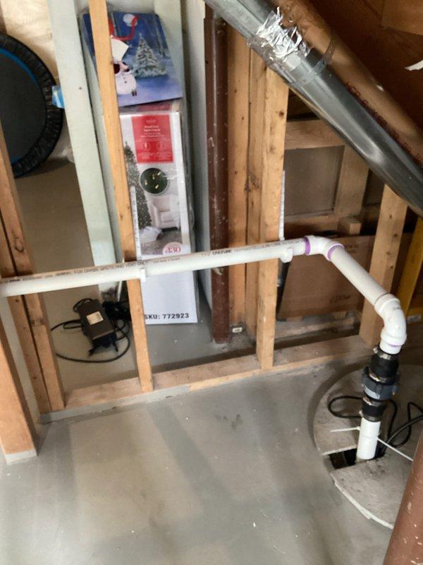Arrived within scheduled window and completed water softener repair by replacing damaged waterlines to unit. Upgraded sump pump discharge system by converting flexible line to schedule 40 PVC hard pipe, improving durability and flow efficiency. Verified proper operation of both systems before completion.