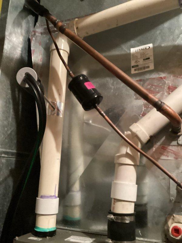 Conducted scheduled prepaid maintenance visit on HVAC system. Inspection revealed properly installed PVC condensate lines and copper refrigerant piping with appropriate color-coded markings at connection points. No issues requiring adjustment were identified during the service.