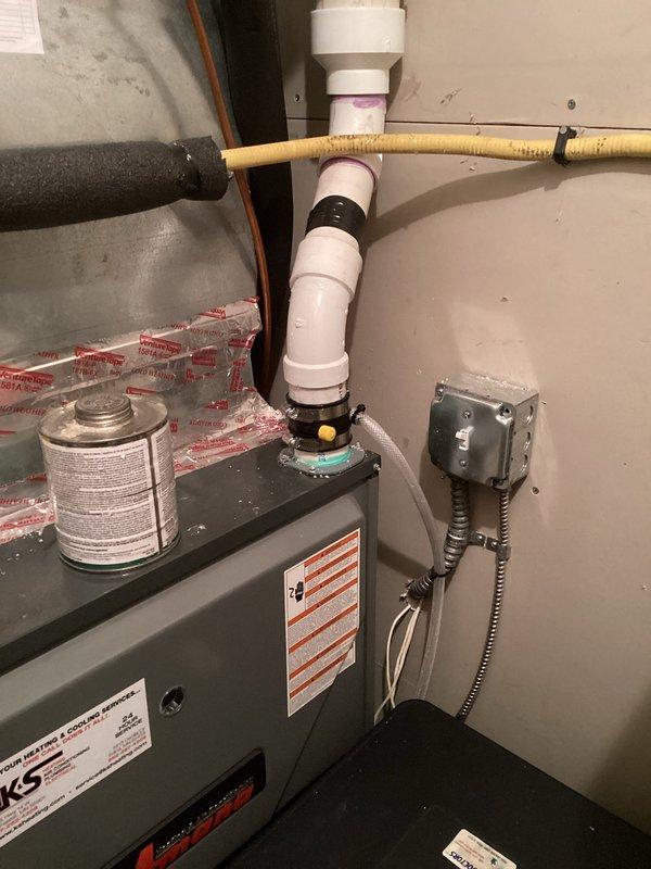 Diagnosed no heat condition in existing furnace system, confirming previous day's assessment. Upon customer approval, completed full system replacement with new furnace unit, including proper installation of all electrical connections, ductwork, and PVC venting. System now operational with all components properly secured and tested.