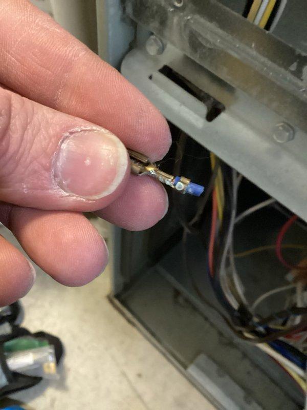 Responded to no heat call for 10+ year old furnace. Diagnosed corrosion on gas valve wiring connections. Terminated and replaced faulty wire connectors to restore proper electrical connection to gas valve, returning system to normal heat operation.
