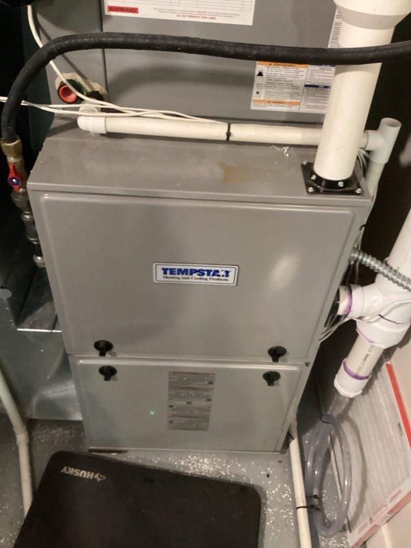 Responded to no heat service call for furnace under 10 years old. Diagnostic inspection revealed plugged condensate line as root cause of heating failure. Cleared condensate drainage system, restoring proper furnace operation and heat production.