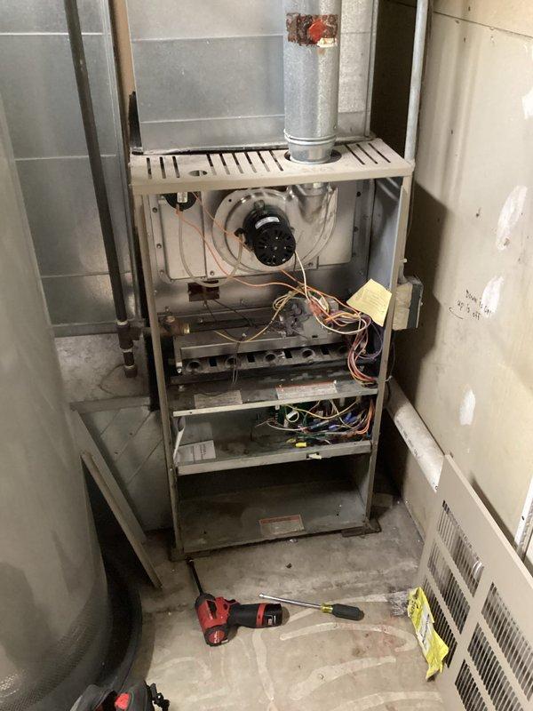 Responded to no-heat call for 28-year-old furnace. Diagnostic testing revealed failed inducer motor as the root cause of system non-operation. Due to equipment age and overall condition, recommended full system replacement as the most cost-effective solution rather than component repair.