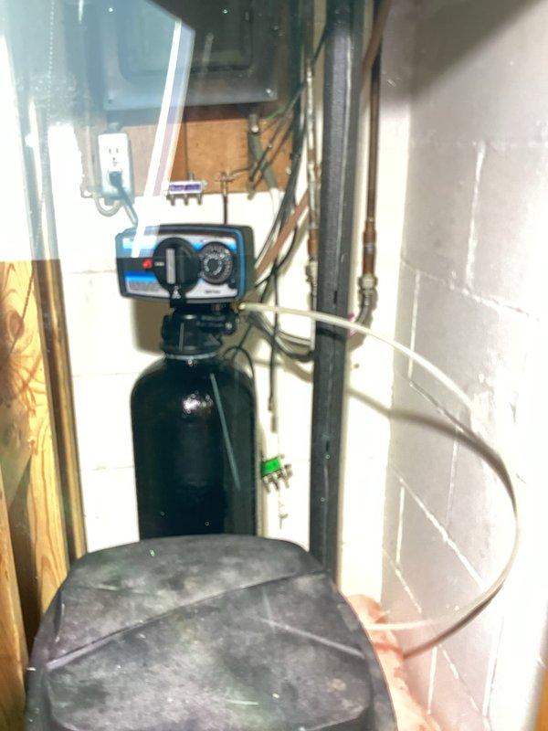 Conducted site assessment for water softener system rerouting project. Current configuration only services washer and downstairs shower; client requests expansion to whole-house coverage. Documented existing equipment and plumbing layout for comprehensive estimate to be provided by Dave.