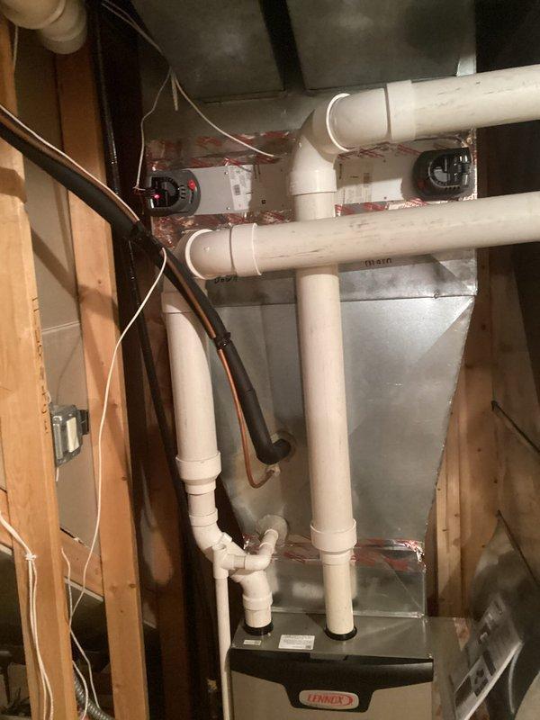 Performed scheduled tune-up service on the customer's furnace/air handler system. Inspected all components including PVC venting, condensate drainage, and electrical connections. System was found to be in good working order with no issues identified. All operations verified and unit is functioning properly after service.