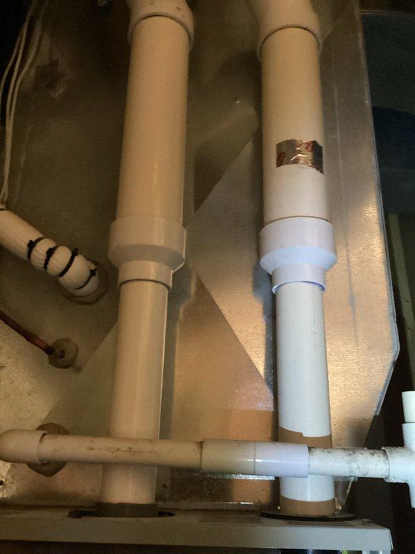 Performed scheduled furnace tune-up service, arriving between 8-12 as arranged. Completed comprehensive system inspection and maintenance procedures per standard tune-up protocol. Documentation includes verification of PVC exhaust/intake piping installation which appears properly secured with appropriate fittings and in good working condition.