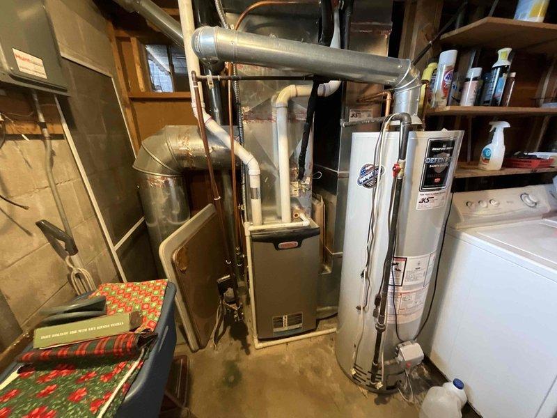 Conducted site assessment at client's utility room to provide estimate for humidifier installation on existing furnace system. Evaluated current furnace configuration, available mounting space, and nearby water supply connections to determine optimal humidifier placement options. Documented existing HVAC setup to prepare comprehensive quote for improving indoor air quality through proper humidification.