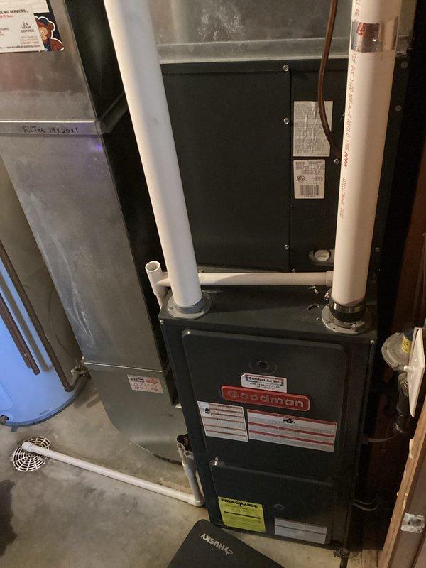 # HVAC Service Report Performed preventive maintenance agreement (PMA) service on residential furnace system. Accessed unit in utility closet alongside water heater and ductwork. Replaced dirty furnace filter that was obstructed by drain line positioning. Completed full tune-up inspection per PMA protocol. Customer enrolled in maintenance membership program at completion of service.