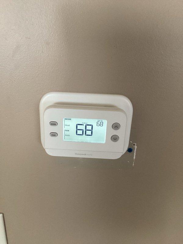 Responded to service call regarding loud noise from dual zone damper. Diagnosed and confirmed failed damper in zoning system. Inspected thermostat (Honeywell digital, set to 68°, Heat mode) and ordered replacement damper for future installation.