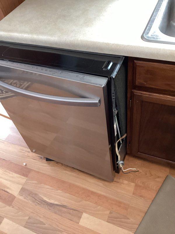 Removed kitchen faucet and garbage disposal unit to prepare for scheduled countertop installation. Documented existing double-basin sink setup with current disposal connection and drain configuration. Will return after countertop installation to install customer-supplied replacement faucet and garbage disposal.