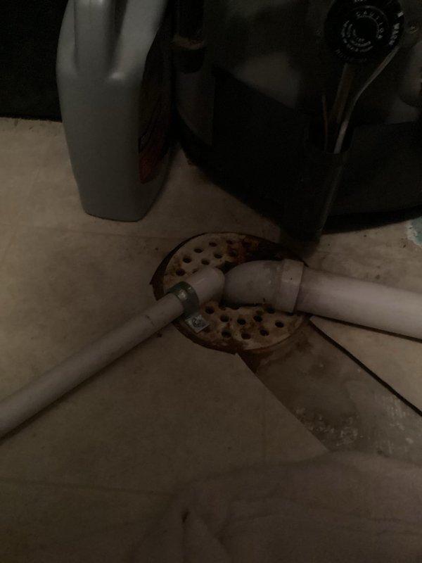 Responded to water leak issue near furnace. Diagnosed problem as improperly positioned condensate drain line causing water to pool around floor drain. Installed 90-degree elbow fitting at drain line termination to direct water flow properly into drain, successfully resolving the leak.