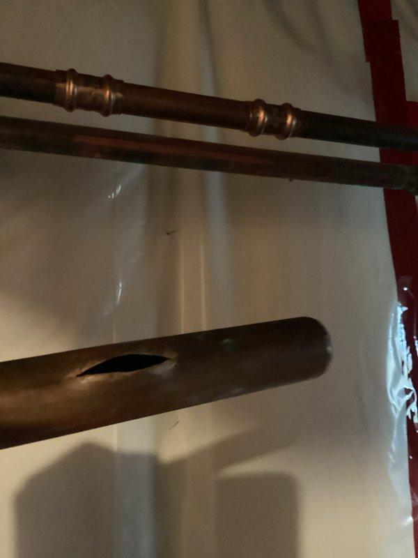 Responded to emergency water leak caused by cracked copper pipe near the water meter. Upon arrival, assessed the burst water line and performed necessary repairs to the broken section of copper piping using compression fittings to restore water service and stop the leak.